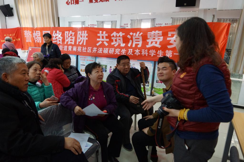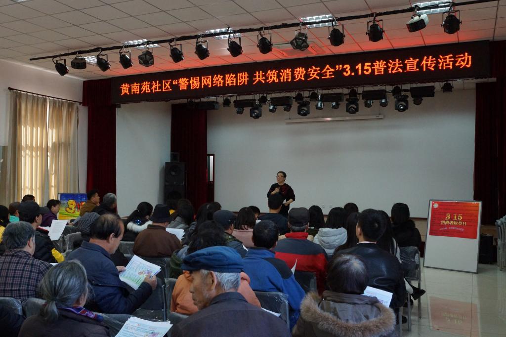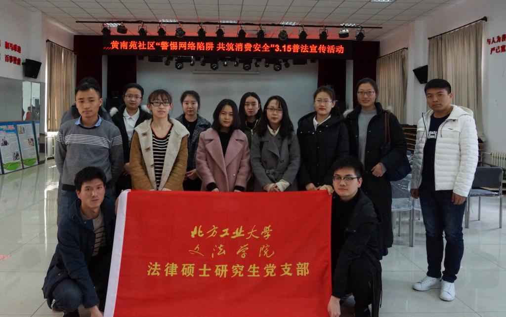3月15日下午,法律硕士研究生党支部与法学本科学生第一党支部联合在八角街道黄南苑社区开展了主题为“警惕网络陷阱,共筑消费安全”的“3·15”消费者权益日法制宣传活动,20余名党员、积极分子和100余名社区居民参加了活动,活动由法律硕士研究生党支部张文兵同学主持。