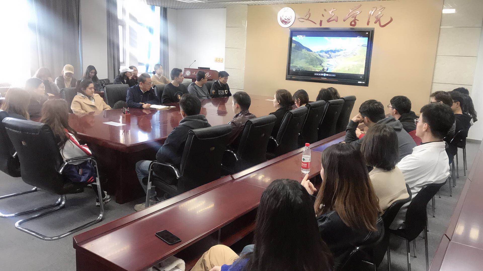 3月21日晚,威尼斯官网组织新疆少数民族同学集中观看《新疆的反恐 去极端化斗争》宣传片,学院党委副书记刘祥坠、团委书记单连良、辅导员尤博、新疆内派教师加娜尔、新疆少数民族及部分藏族同学共计50余人一同观看。