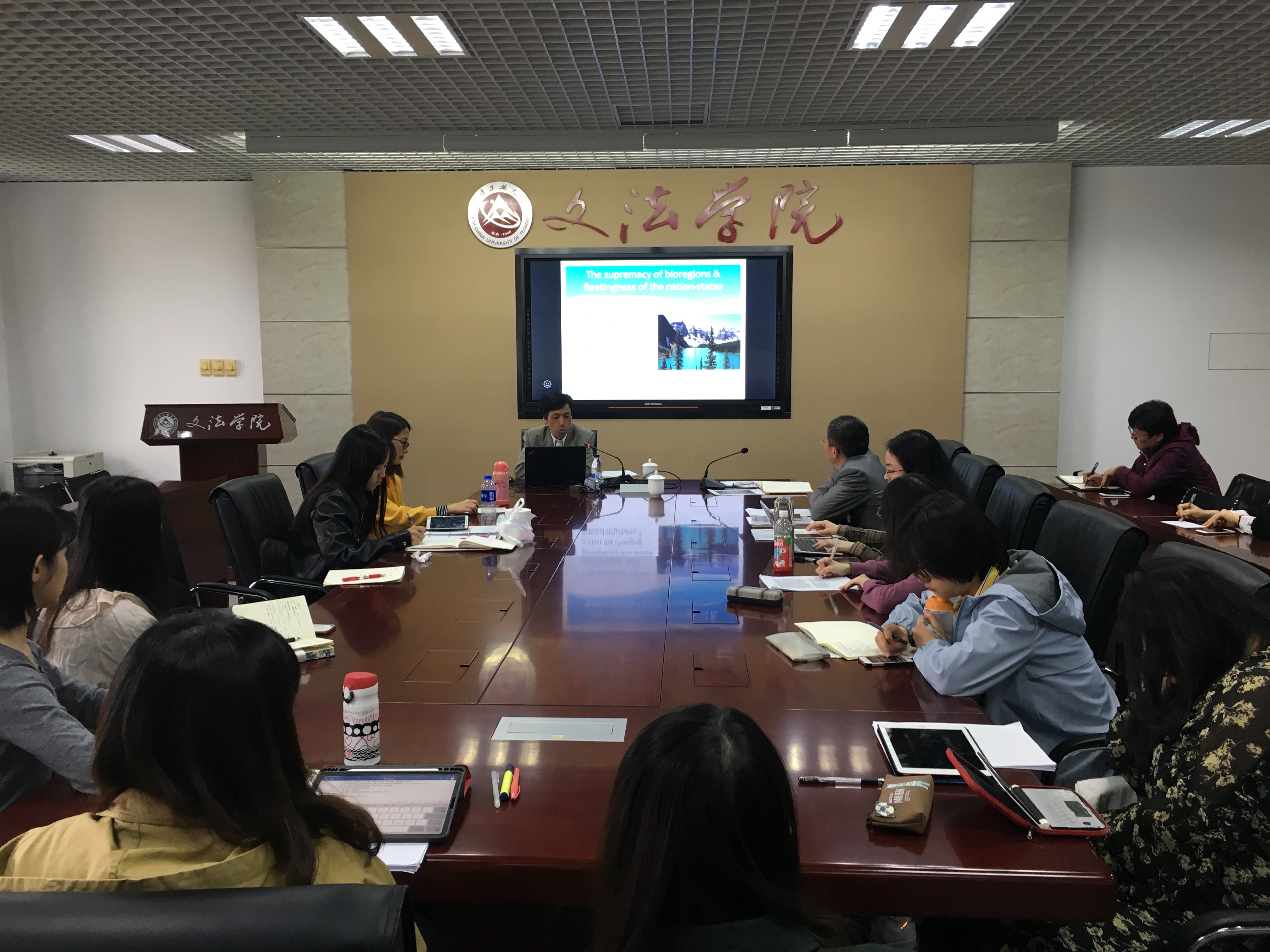 近日,北京外国语大学英语学院院长张剑教授应邀到威尼斯官网做了题为《农村包围城市:加里•斯奈德的中国之行与生态政治》主题的学术讲座,袁凤识副院长主持了讲座。