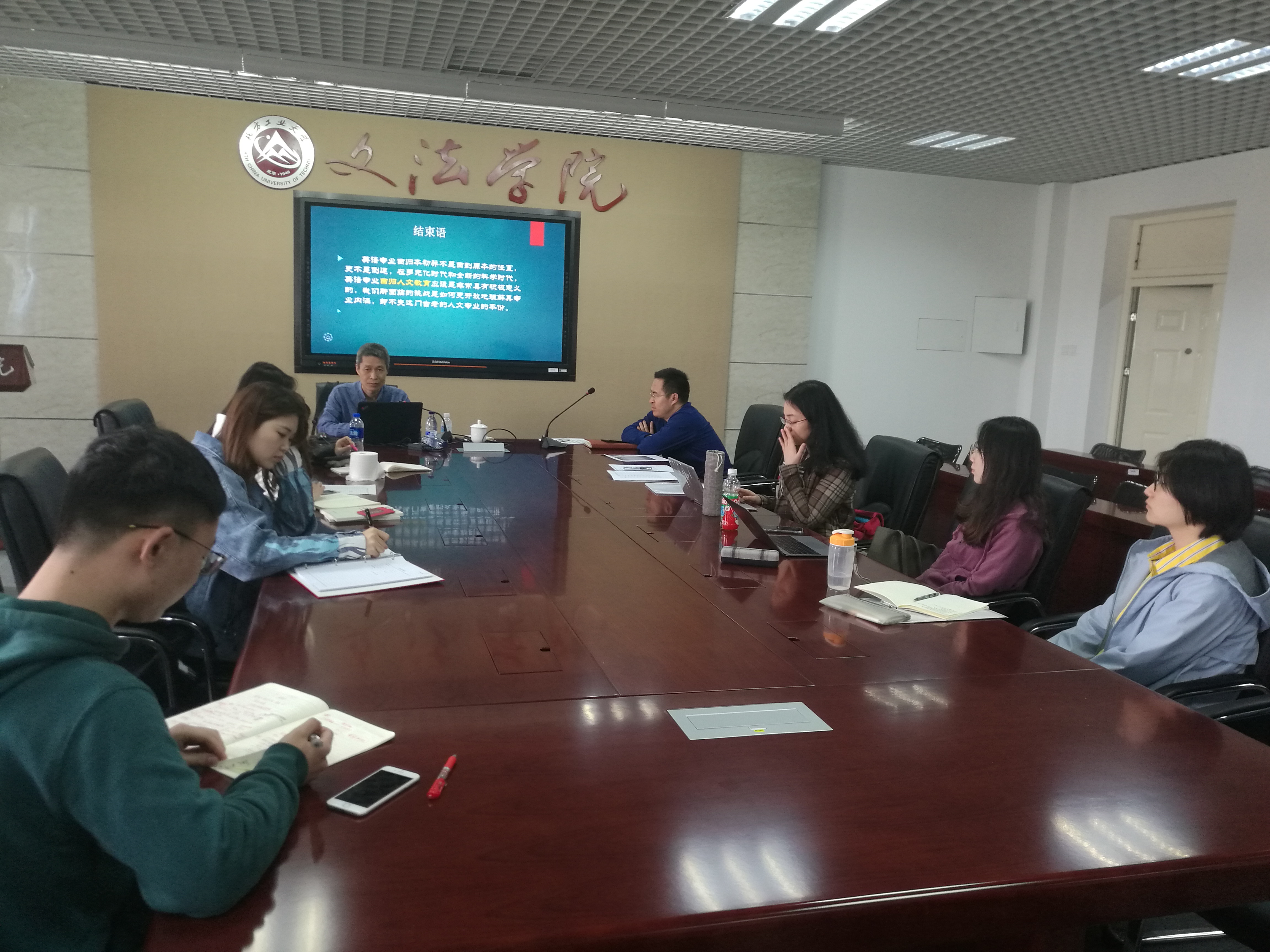 4月18日下午,首都师范大学封一函教授受邀到威尼斯886699讲学并作了题为《多元化时代英语专业的人文内涵》的学术讲座,威尼斯886699副院长袁凤识参加了讲座,外语研究生党支部书记李翔老师主持了讲座。