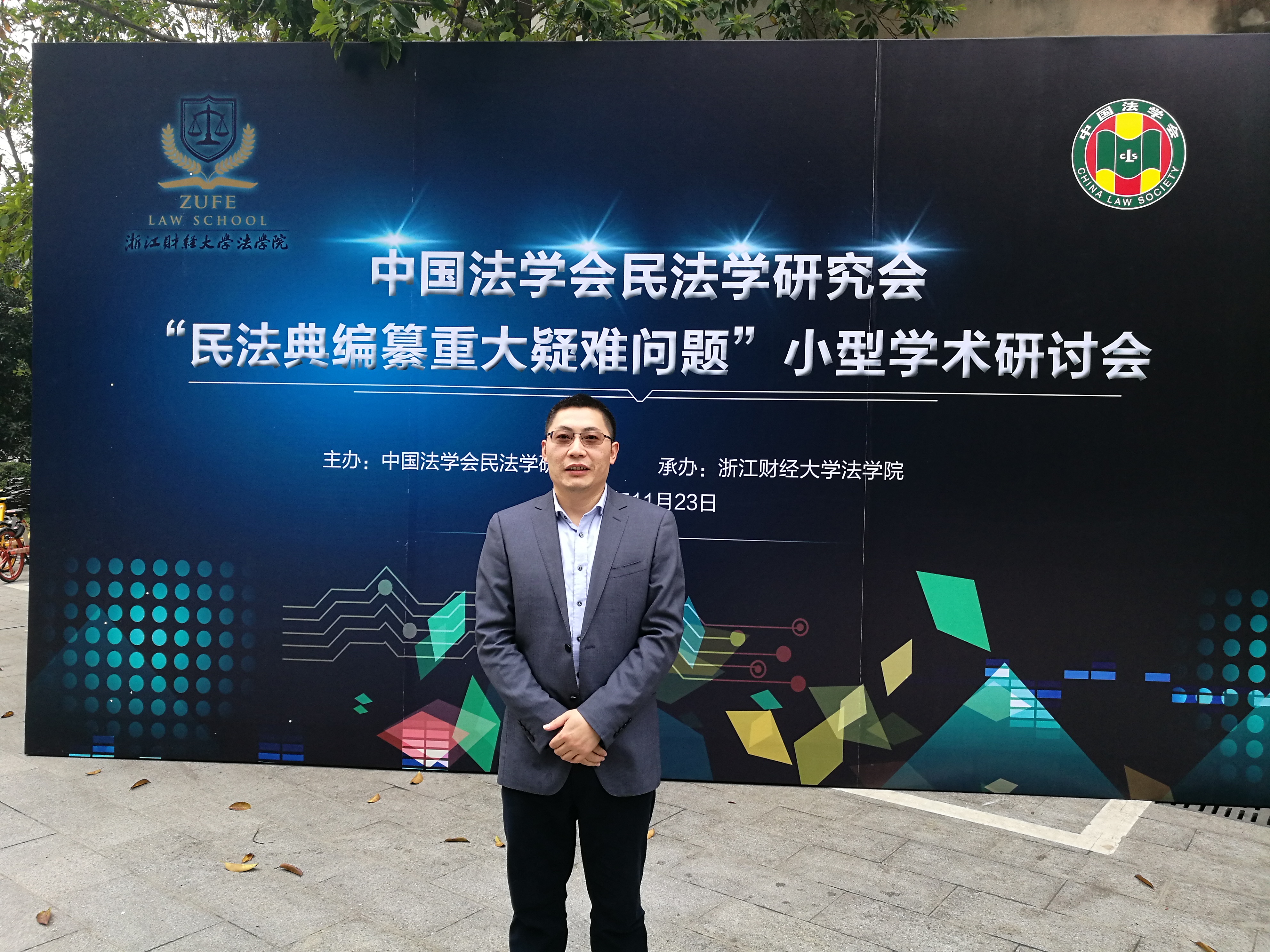 11月23日,由中国法学会民法学研究会主办,浙江财经大学法学院承办的“民法典编纂重大疑难问题”小型学术研讨会在浙江省杭州市隆重举办。来自全国各地的民法理论界和实务界专家50余人齐聚一堂,共同探讨民法典各分编编纂过程中遇到的热点及疑难问题。邓恒博士受邀参加研讨会,并以“知识产权与民法的关系”为议题做主题发言。