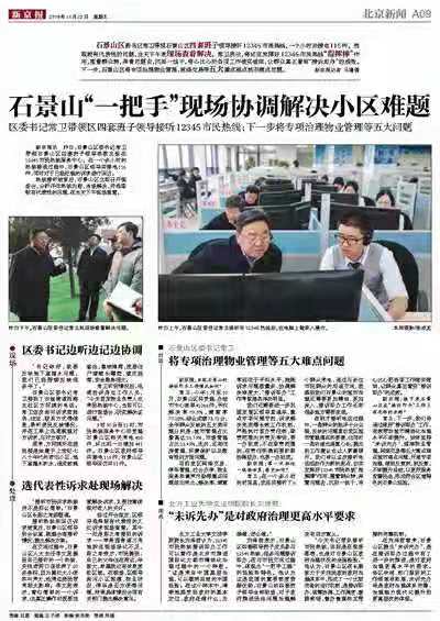 11月21日,石景山区委书记常卫带领石景山区四套班子领导悉数出现在12345市民热线服务中心。在一个多小时的热线接通过程中,石景山区领导共接电116件,同时对于已经处理的诉求进行回访。热线接听结束后,石景山区立即召开现场会,分析评估热线内容,当场解决,并选取较有代表性的问题,在当天下午现场查看。威尼斯886699威尼斯886699院长刘泽军教授在现场发表了专家点评