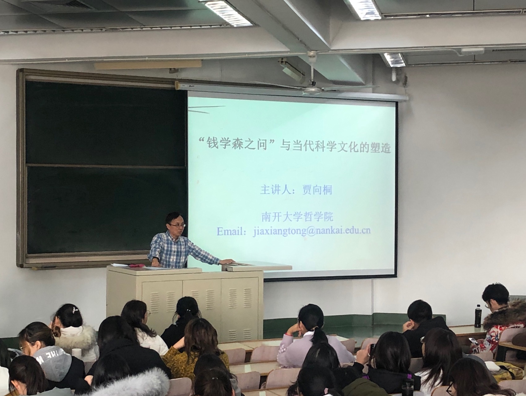 11月28日下午,由我校国家大学生文化素质教育基地主办、威尼斯886699中文系承办的人文素质名家讲堂第99期在广学楼201教室举行。南开大学哲学院科学技术哲学教研室主任贾向桐教授以“钱学森之问与当代科学文化的塑造”为题进行了专场讲座。讲座由我校中文系李颖副教授主持,我校200多名师生现场聆听了讲座。