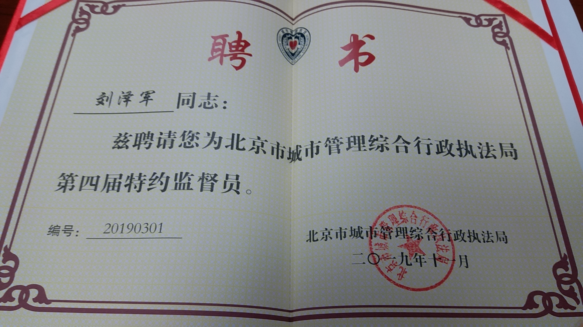 12月4日,国家宪法日,北京市城市管理综合行政执法局隆重举行“特约监督员”聘任仪式。北京市城管局党组书记、局长孙连辉等领导出席,并为 “特约监督员”颁发了聘书。