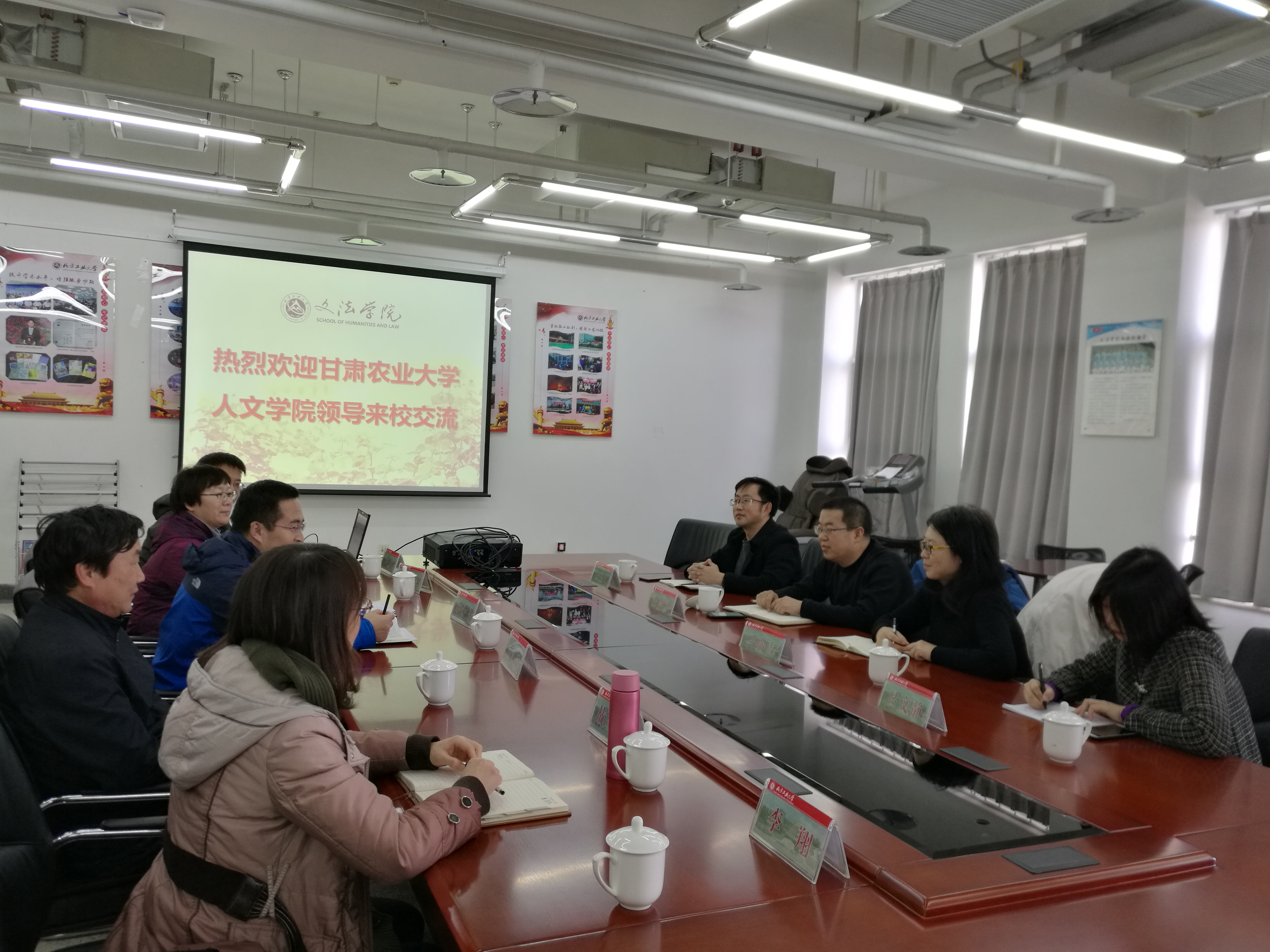 袁本文书记热情欢迎甘肃农业大学客人来我校交流。副院长袁凤识向客人们介绍了学校和学院的发展脉络和基本情况,高越主任向客人介绍了我校大学英语教学改革情况,随后双方就大学英语教学改革、英语专业人才培养特色凝练等问题进行了充分交流。