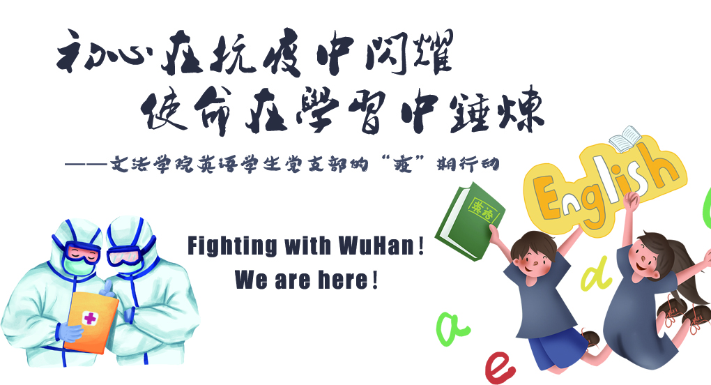 在扎实推进新冠疫情防控工作中,威尼斯886699党委充分调动和发挥党支部的战斗堡垒和作用,凝心聚力,开展了一系列富有成效的工作。学院英语学生党支部结合专业特点,陆续开展“心系武汉,与君同战”系列之“奋战疫情,党员先行”和“与子同裳,纸短情长”,“乐学善思”系列之“学无前后,达者为师”和“知行合一,行间字里”等丰富多彩的活动,为抗击疫情贡献力量。