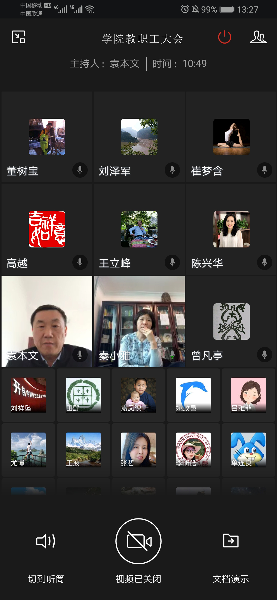 袁凤识副院长对毕业生工作进行重点布置。一是要做好论文远程指导工作。指导老师每周应至少与学生进行两次详细沟通,同时要做好远程答辩准备;二是各系要重点关注目前还差学分的学生,制定落实到个人的切实可行解决方案;三是提前谋划好本学期的远程考试安排;四是各系要做好“课程思政”工作的研讨与落实。