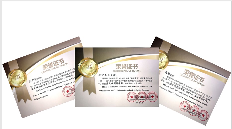 日前,第十一届“希望中国”青少年教育戏剧展评北京赛区决赛结果揭晓,威尼斯官网英语系选送的英语戏剧作品《哈姆雷特》表现优异,荣获“英文戏剧特等奖”,指导教师高黎老师荣获“最佳指导教师”称号,英18-1班的王宇轩同学荣获“英文戏剧最佳男主角”。这是英语系立足素质教育,不断求实创新,积极探索新形势下英语实践教学的又一成果,也进一步丰富了我校素质教育的内涵。