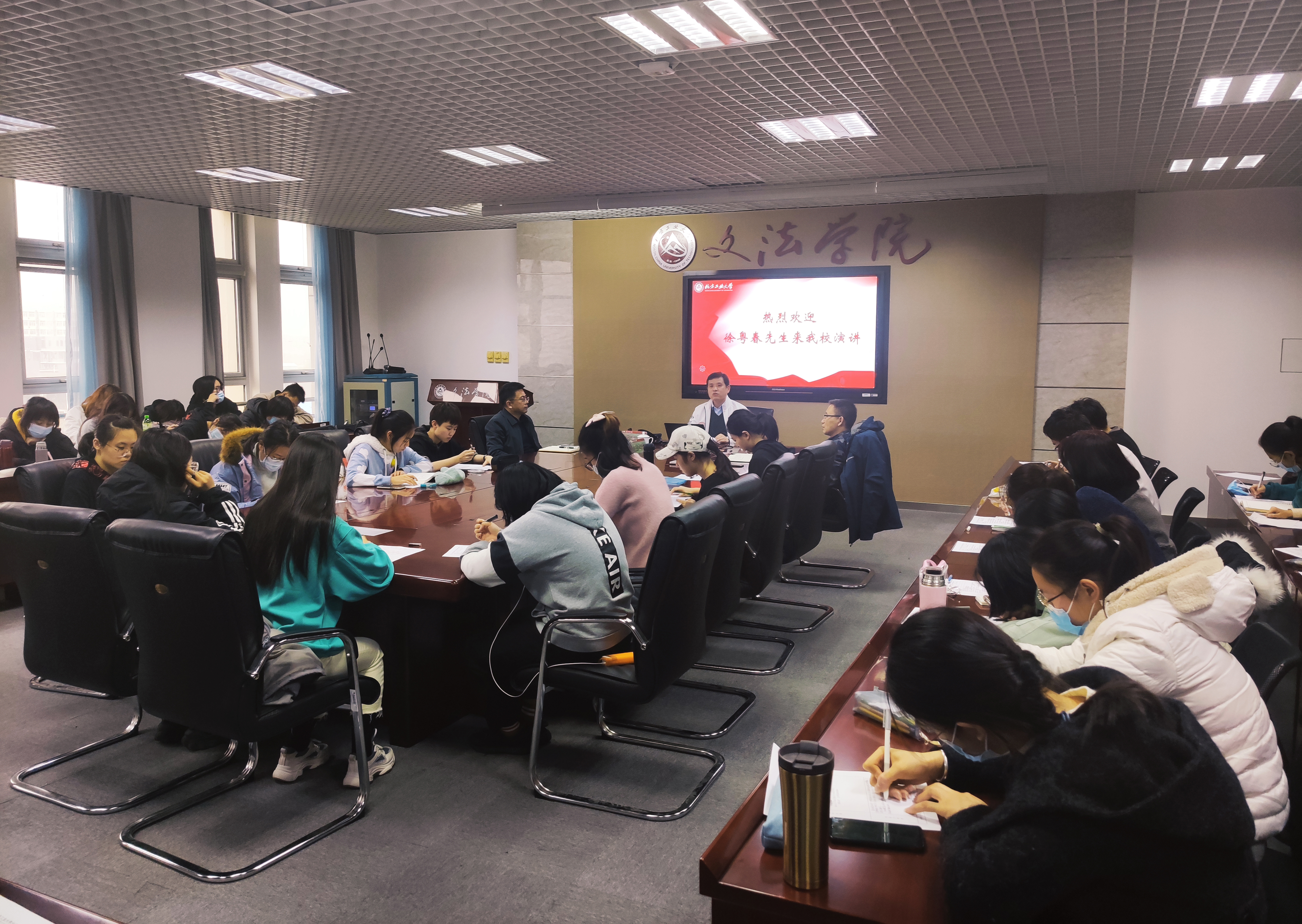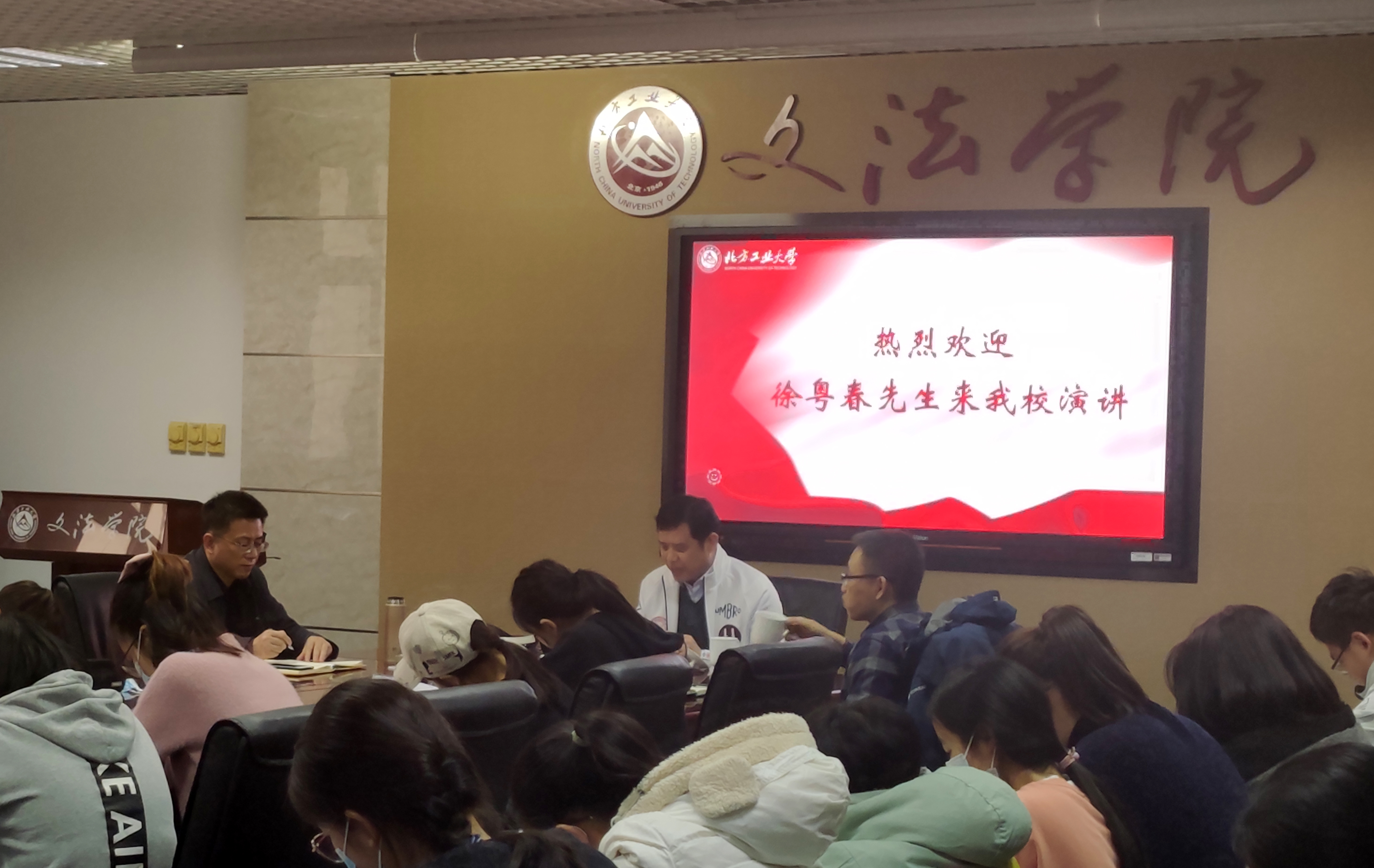 11月16日,国家大学生文化素质教育基地名家讲座在学院学术报告厅举行。中国文联文艺评论中心主任、《中国文艺评论》杂志主编徐粤春老师为我校师生做了题为《文艺与意识形态》的学术讲座,王文革教授主持讲座,董树宝教授与50余名学生聆听讲座,并与徐粤春老师进行了深入交流。