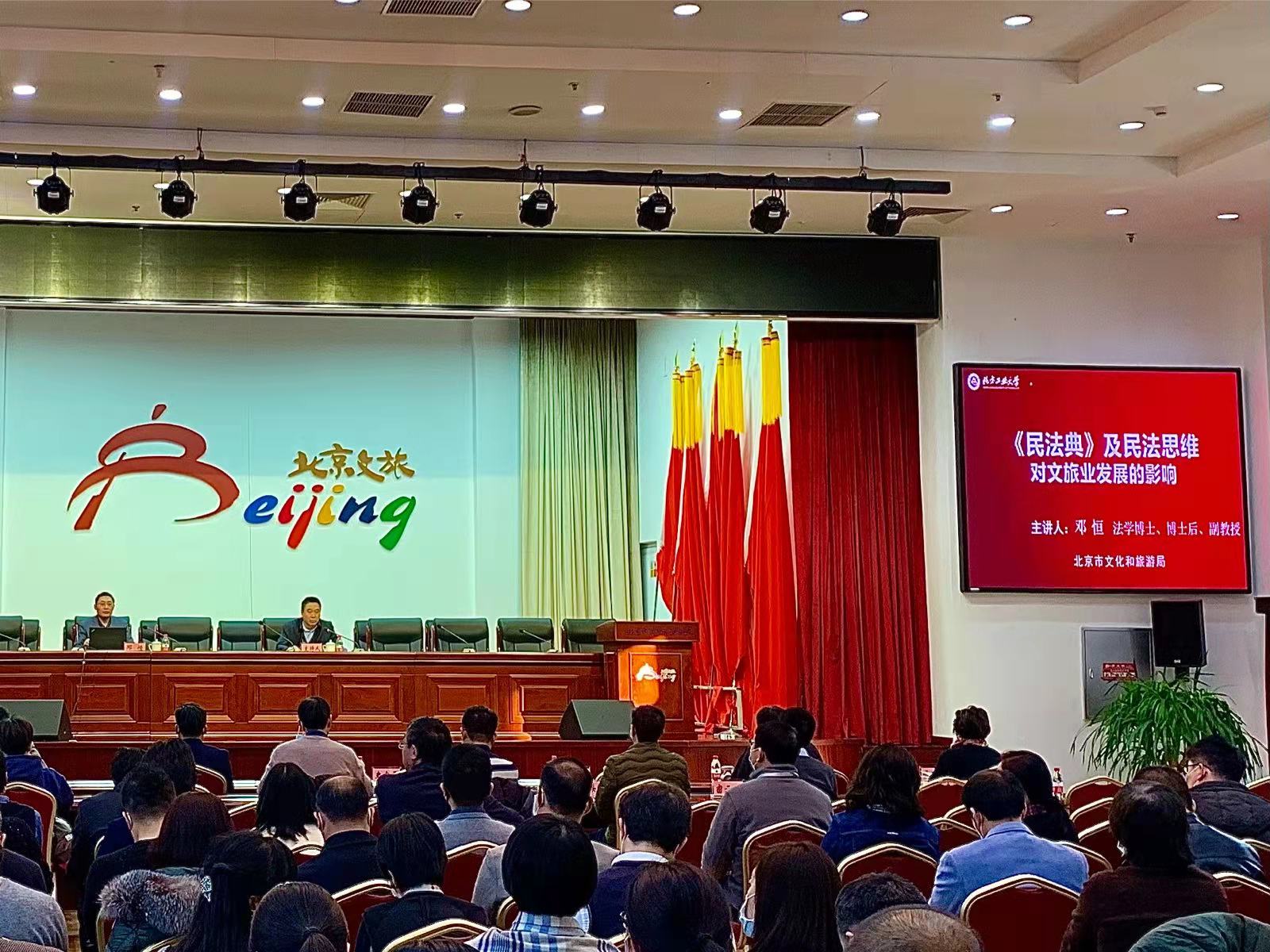 根据2020年干部教育培训安排,北京市文化和旅游局于2020年12月3日举办北京文化和旅游大讲堂,我校法律系邓恒副教授应邀开展以《<民法典>及民法思维对文旅业发展的影响》为题的主题讲座。北京市文化和旅游局局机关全体人员、局属单位领导及各区文旅局代表近百人参加了此次活动。