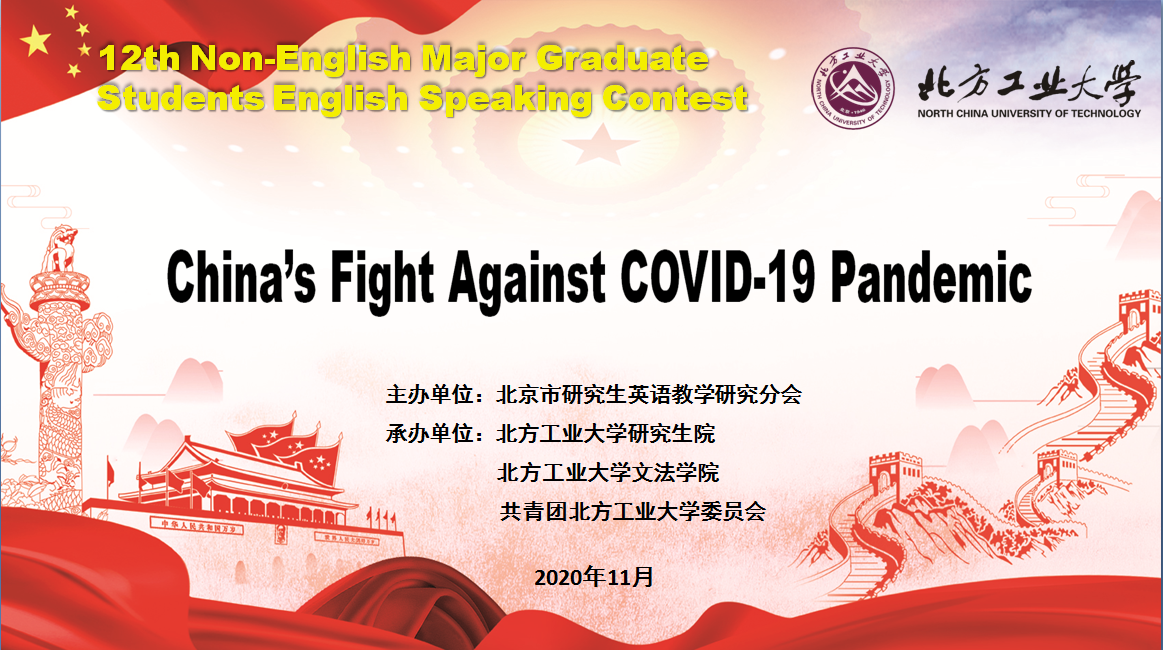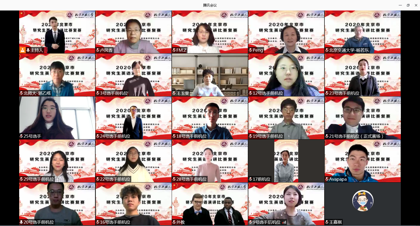 近日,北京市第十二届研究生英语演讲比赛复赛在我校成功举办,来自首都各高校推选的29名优秀选手通过线上角逐形式参加了比赛,8名校内外中外专家担任评委。本届大赛的赛题为“China’s Fight against COVID-19 Pandemic”。